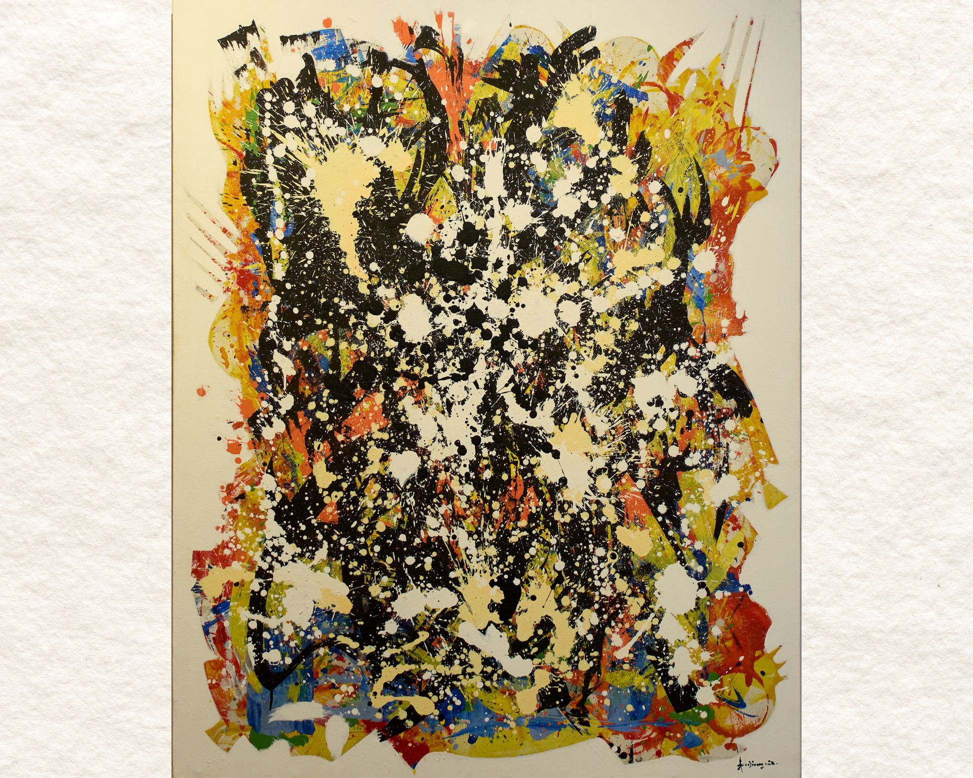 Cette œuvre grand format (1,54 m x 1,20 m) s’inscrit dans cette démarche. Riche, texturée, elle capte l’œil par sa présence et sa puissance narrative. Plus qu’une simple toile, elle agit comme une archive sensible : un fragment du monde, sublimé par la main de l’artiste.